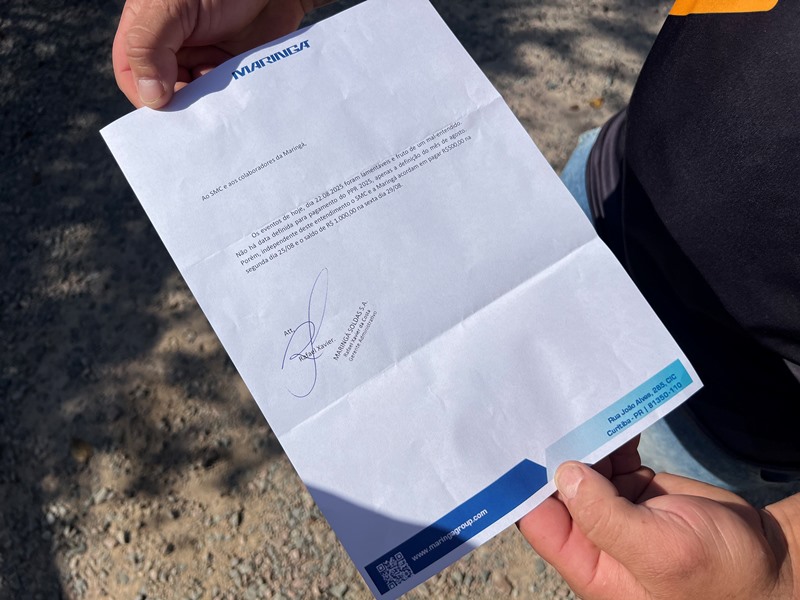 A empresa se comprometeu em pagar R$ 500,00 nesta segunda-feira(25/08) e R$ 1.000,00 na próxima sexta-feira (29/08).