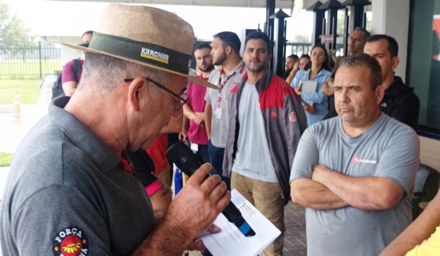O Sindicato dos Metalúrgicos da Grande Curitiba coordenou, na última quarta-feira, 4 de fevereiro, uma assembleia na porta de fábrica da AAM do Brasil, em Araucária, para discutir com os trabalhadores a proposta de compensação de jornada relativa aos feriados e ao período de Carnaval.