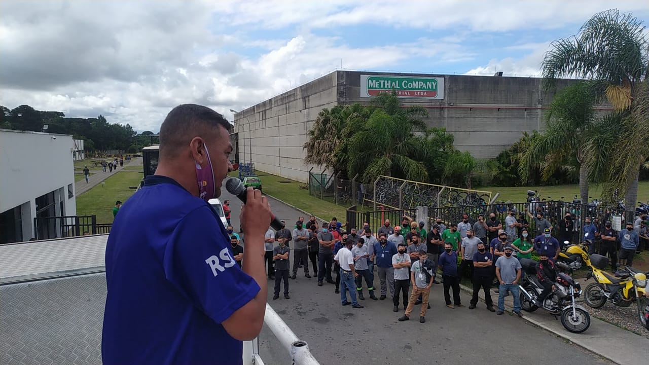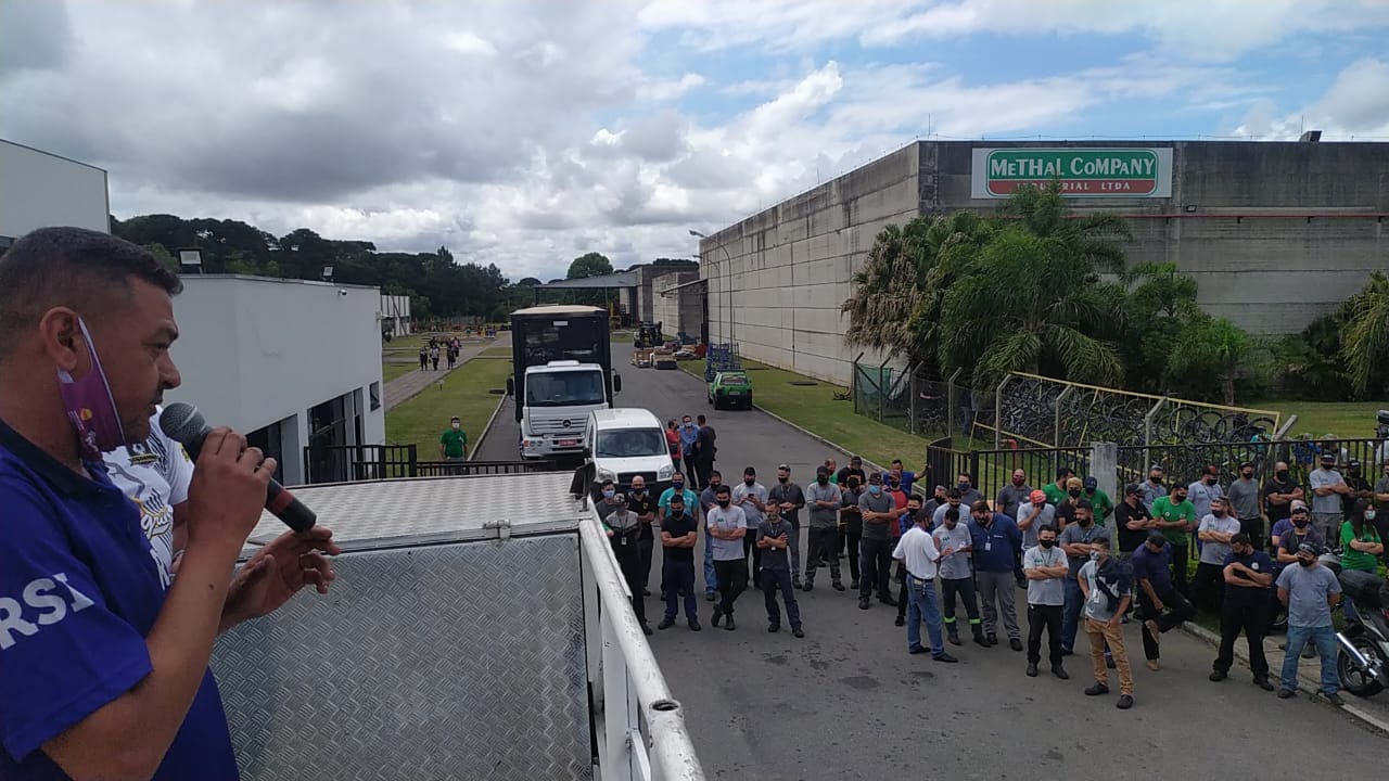 Solidariedade! Em assembleia liderada pelo SMC na porta de fábrica na tarde desta sexta-feira(03), os metalúrgicos da Methal Company (Fazenda Rio Grande) intensificaram a Campanha Natal sem Fome, com o objetivo de ajudar as pessoas que não tem o que comer