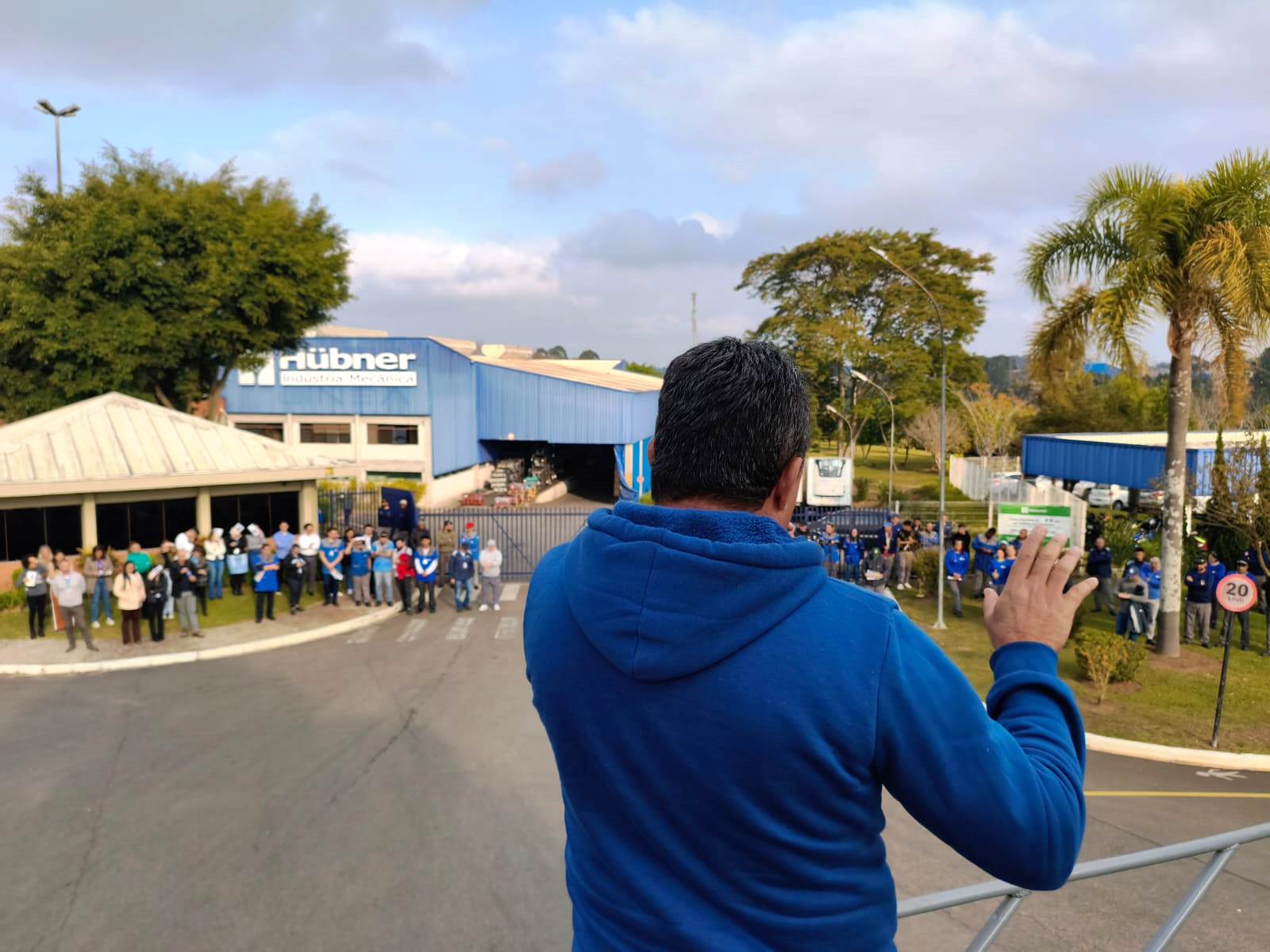 Logo após a assembleia os diretores da área de Araucária/Fazenda Rio Grande, Jorandir Ferreira, o Alicate e Edson dos Anjos, juntamente com o delegado sindical na Hübner, Douglas Queiroz, falaram sobre a pauta aprovada na frente da empresa.