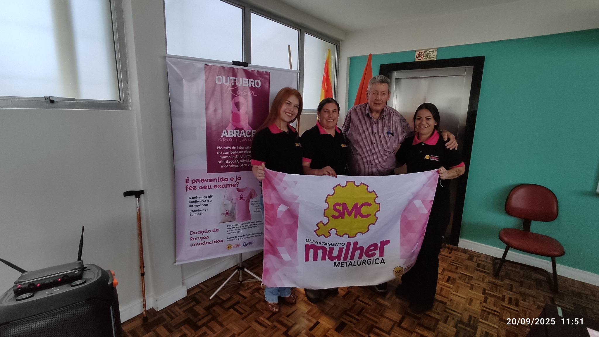 A atividade contou com a participação do Departamento da Mulher do SMC, que falou aos aposentados sobre a importância da campanha Outubro Rosa, de combate ao câncer de mama. Os detalhes da Campanha foram comentados pela diretora Daniele Marcão.