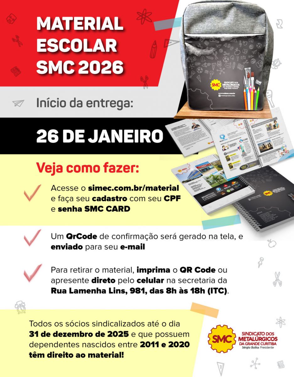 Todos os sócios sindicalizados até o dia 31 de dezembro de 2025 e que possuem dependentes nascidos entre 2009 e 2020 têm direito ao material.