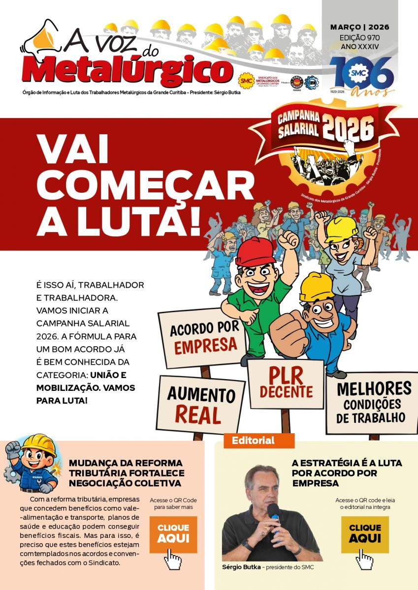 O início da mobilização é o destaque da edição nº 970 do A Voz do Metalúrgico que conta com a linha de trabalho explanada no editorial pelo presidente do SMC, Sérgio Butka.