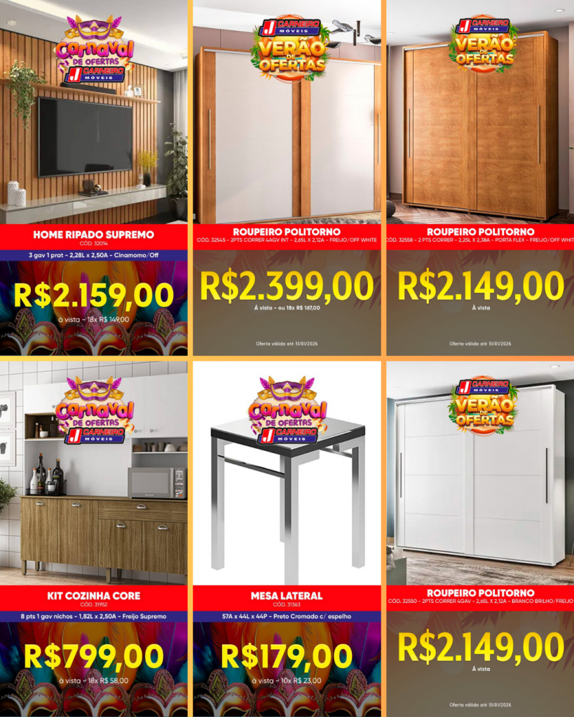 Enquanto você curte a folia, a J. Carneiro Móveis tem preços especiais pra renovar sua casa!